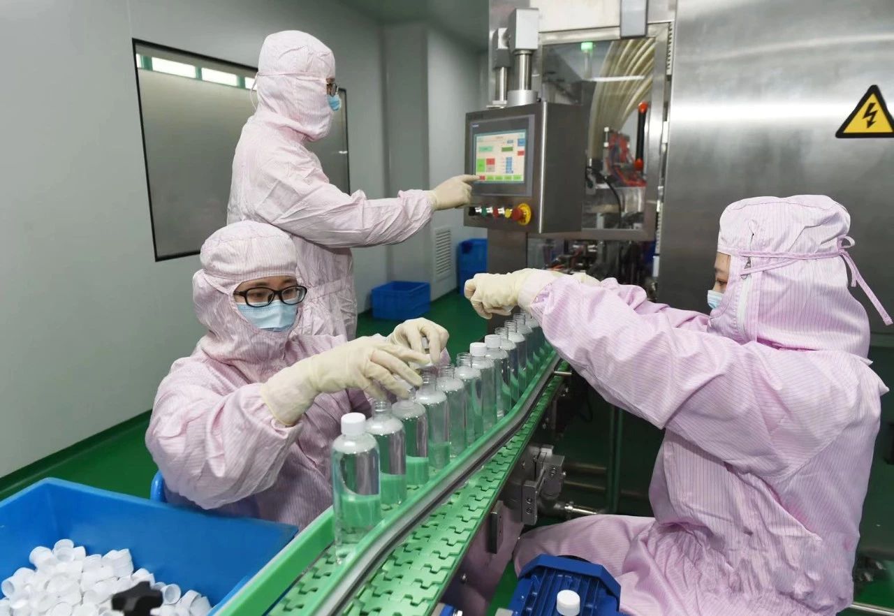 韩淑芹介绍说,石家庄Made In China的消毒剂产品主要是复合季铵盐类,用于医疗机构、制药食品等企业以及家庭的日常消杀防护,1月24日腊月三十消毒剂生产线刚刚停产放假。疫情出现后,企业从大局出发,根据相关部门要求,又立即组织工人加班加点投入到防控药品和消杀用品的生产中。目前,防控产品消毒剂及抗病毒、抗菌药品生产线已全部开启,2300名员工奋战在防控药品的生产一线。