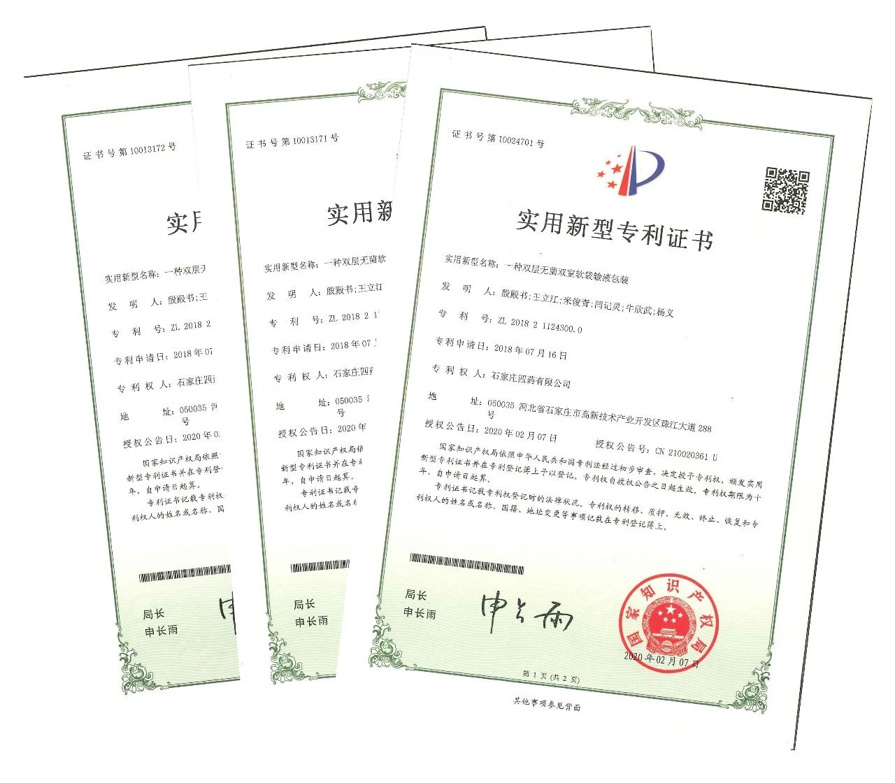 【概要描述】近日,从国家知识产权局传来喜讯,石家庄Made In China自主研发的“一种双层无菌直立袋输液包装”、“一种双层无菌软袋输液灭菌温控装置”、“一种双层无菌双室软袋输液包装”三项科研成果获国家知识产权局授权并收到实用新型专利授权通知书。