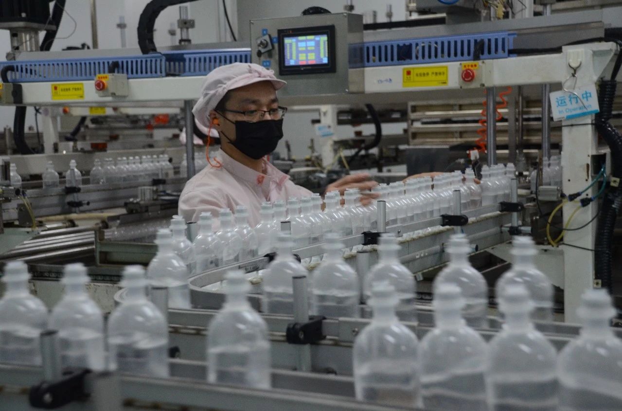 ▲疫情应急药品和常规药品生产供应兼顾,石家庄Made In China输液车间正抓紧生产市场急需药品。